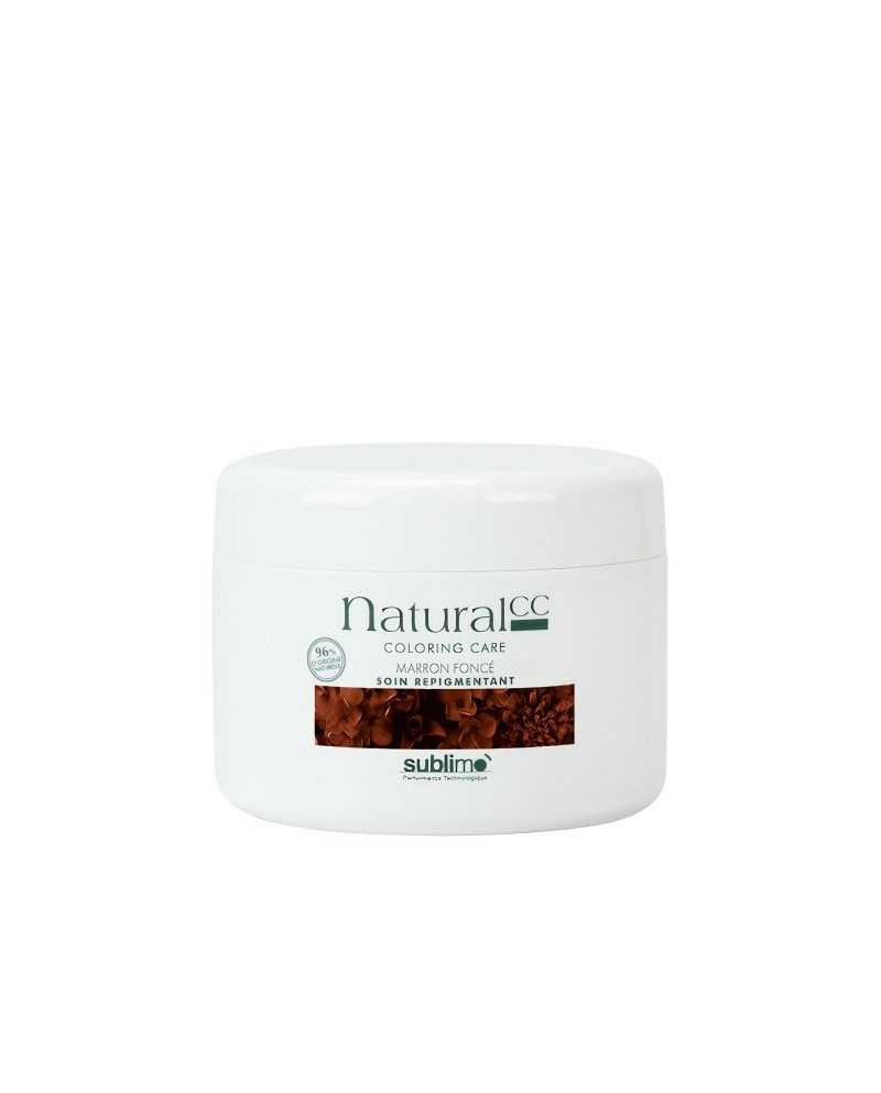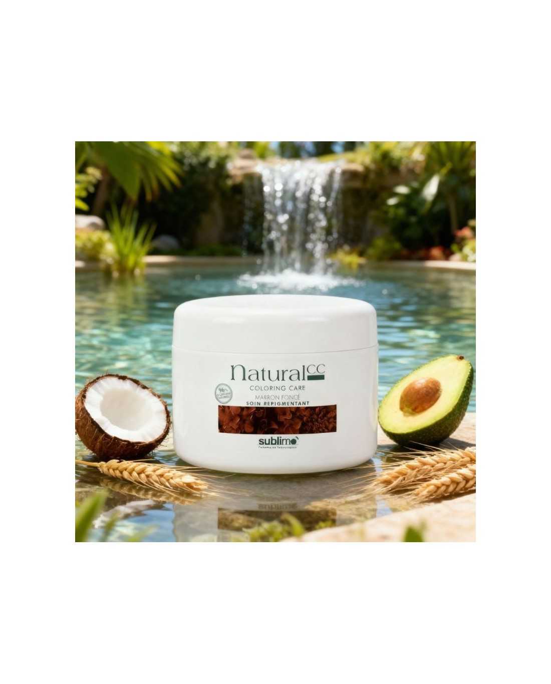 Le soin repigmentant Marron Foncé de la gamme Natural CC Sublimo offre une formule naturelle et sans silicone qui redonne douceur et brillance tout en apportant un reflet marron froid intense. Enrichi en huile de lait de coco, huile d’avocat et protéine de blé, il nourrit intensément la fibre capillaire et sublime les cheveux naturels ou colorés avec un éclat chocolat irisé. Facile à appliquer, il préserve la santé du cheveu pour un résultat lumineux et durable.