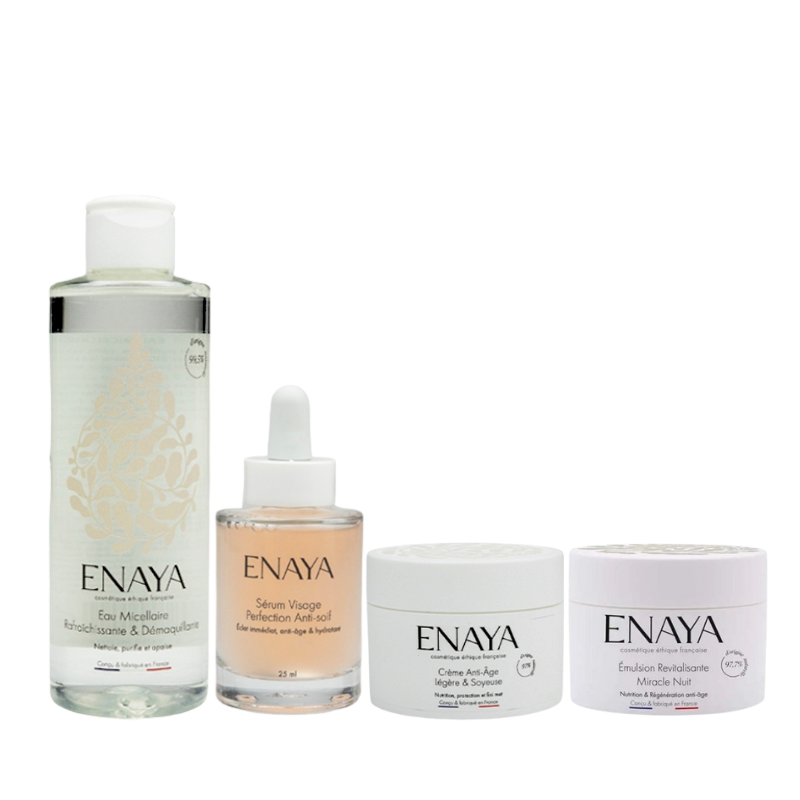 C'est dans ce contexte que nous avons construit une routine complète avec ENAYA, marque 100 % naturelle qui comprend les besoins de la peau en hiver. Trois niveaux de routine, trois budgets, une promesse : retrouver une peau apaisée, hydratée et rayonnante, tout en se faisant plaisir.