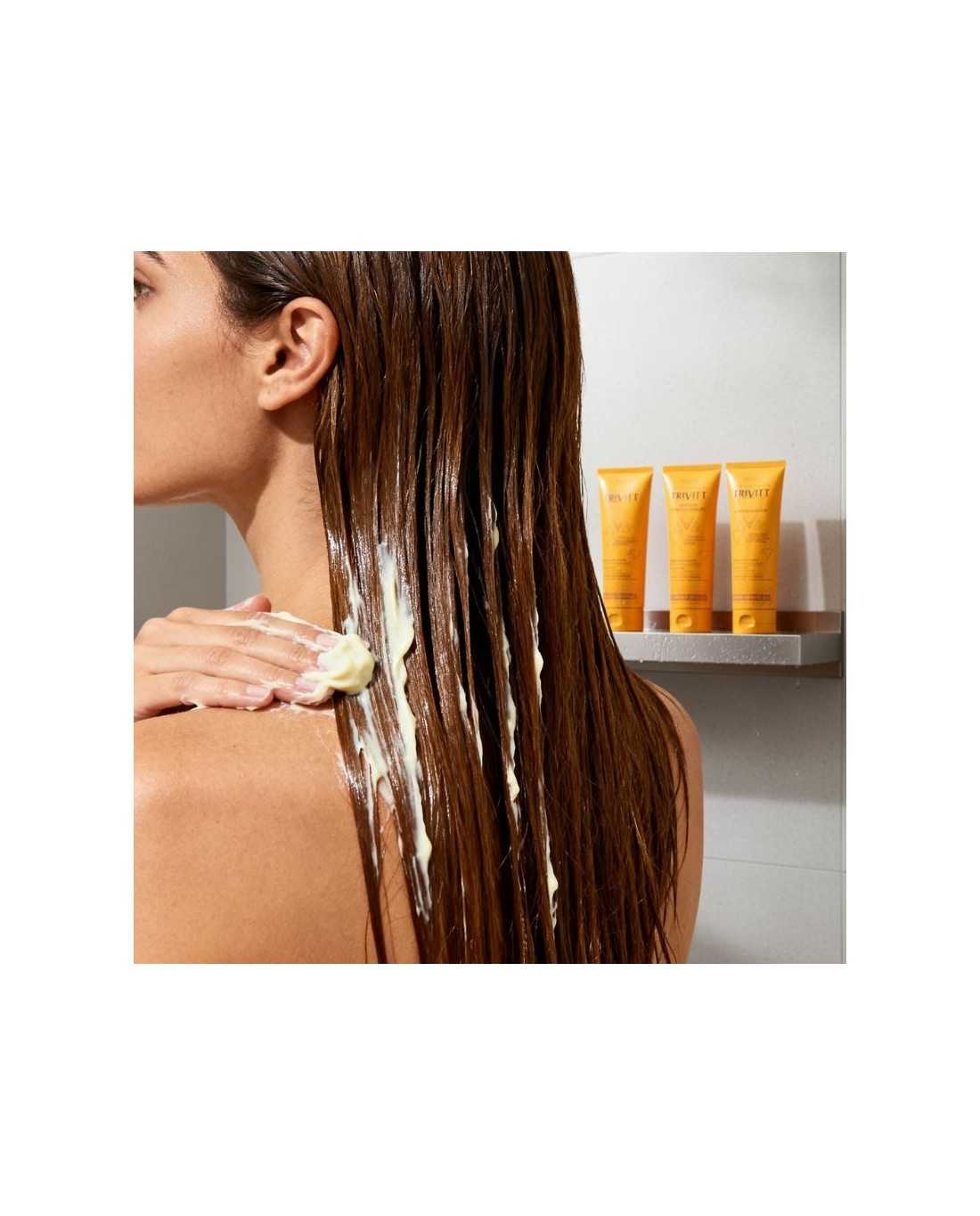 - Restaure l’élasticité et la résistance des cheveux fragilisés